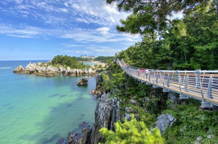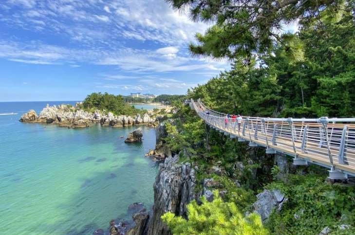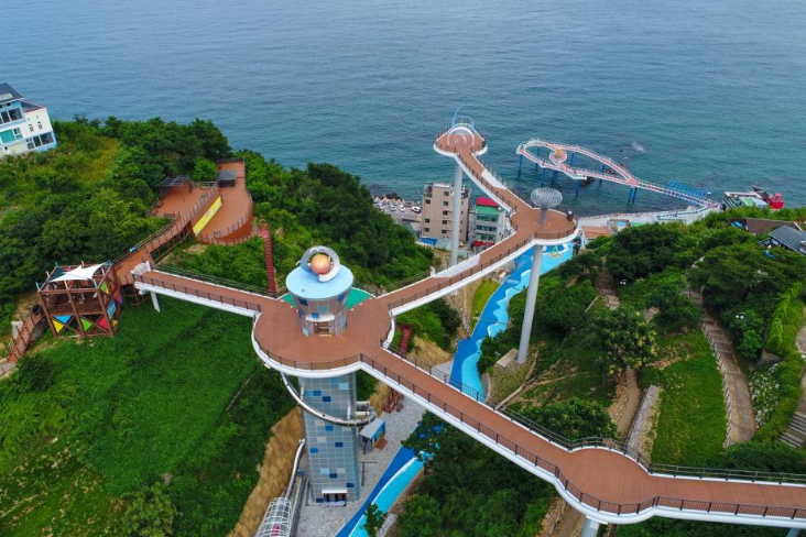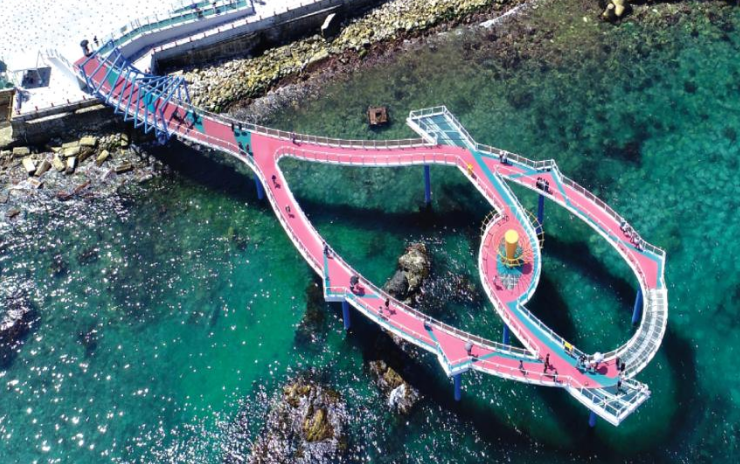 도째비골 해랑전망대는 바다 위 파도 너울을 직접 체험할 수 있는 특별한 공간입니다. 해상 교량은 유리바닥과 메쉬바닥으로 구성되어, 마치 바다 위를 걷는 듯한 감각을 선사합니다.