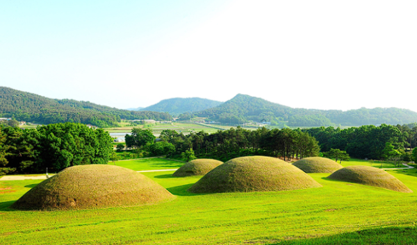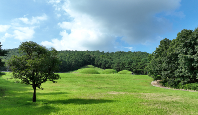 사비시대(538~660) 백제왕릉묘역은 부여 동쪽 나성 바로 밖에 위치해 있으며, 7기의 고분을 중심으로 동서쪽에 고분들이 분포해 있어 총 3개의 무덤군으로 나뉩니다. 특히 중앙구역의 고분들은 크기와 위치로 보아 사비시대 역대 왕들의 왕릉으로 추정됩니다. 이곳은 전통 풍수지리의 명당지세와도 잘 맞아, 당시 백제에서 풍수지리 사상이 중요한 역할을 했음을 보여줍니다.