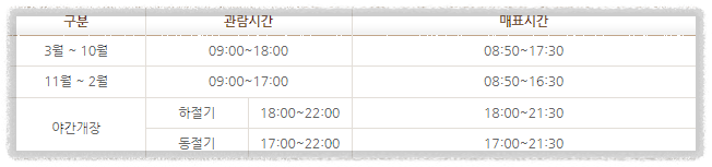 ※ 야간개장 : 24.04.12 ~ 24.11.10 매주 금-일 운영.