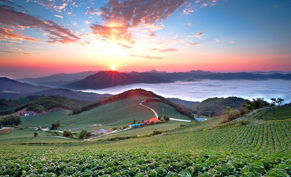 안반데기 마을은 해발 1,100m에 위치한 고산지대로, 넓은 지형과 함께 안반처럼 우묵한 풍경이 인상적인 곳입니다. 농부들의 수고가 담긴 이 산속 마을은 사계절 내내 각기 다른 아름다움을 선사합니다.