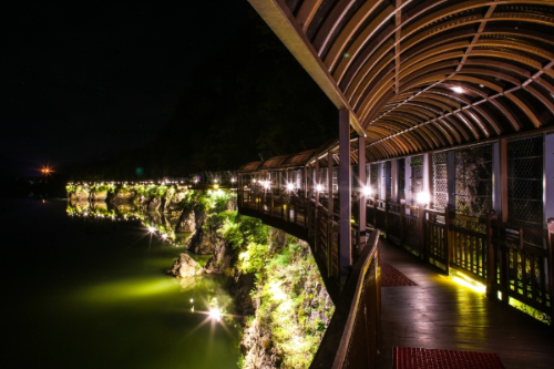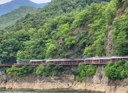 단양강 잔도는 단양강을 따라 조성된 최고의 산책로로 손꼽히는 코스입니다. 강을 따라 설치된 나무데크를 걷다 보면, 한쪽은 단양강의 잔잔한 물결이 흐르고 다른 한쪽은 절벽이 우뚝 솟아 있어 마치 자연의 품에 안긴 듯한 기분을 느낄 수 있습니다. 이곳은 특히 아침이나 해질녘에 방문하면 더욱 아름다운 경치를 즐길 수 있으며, 편안한 산책을 원하시는 분들께 강력히 추천드립니다.
