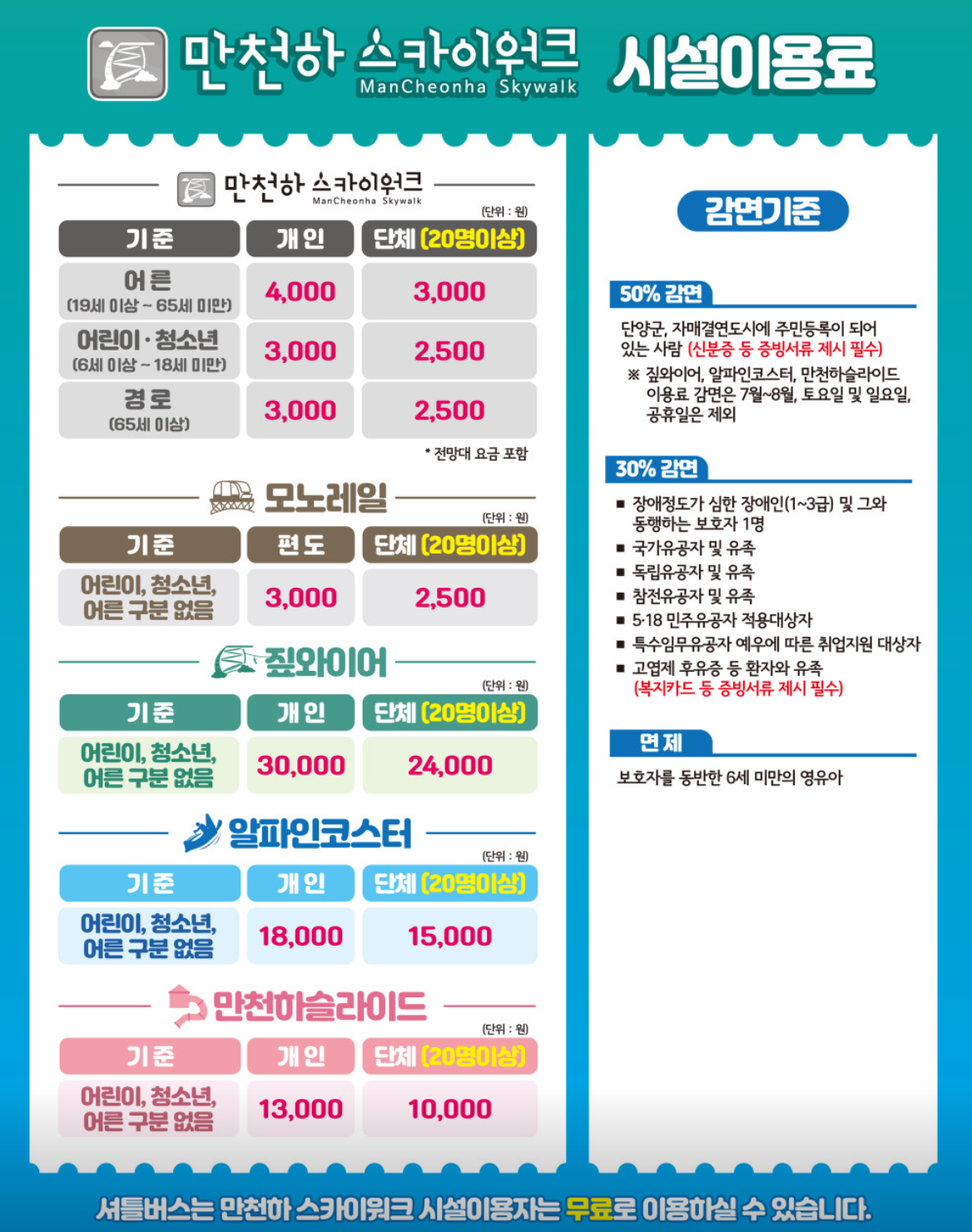 ☑️ 만천하 스카이워크 이용료 안내 바로가기 ☑️