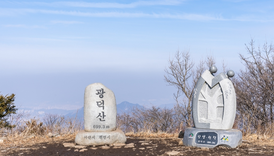 광덕산은 천안 지역의 명소 중 하나로, 사계절 내내 아름다운 풍경을 자랑합니다. 봄에는 진달래와 철쭉으로 물든 산길이 인상적이며, 가을에는 울긋불긋 단풍이 장관을 이룹니다. 등산로가 잘 조성되어 있어 초보자부터 숙련된 등산객까지 모두 즐길 수 있는 곳으로, 정상에 오르면 탁 트인 풍경이 지친 마음을 달래줍니다.