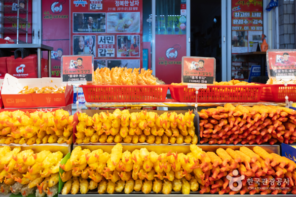 속초관광수산시장은 속초에서 가장 활기찬 장소 중 하나입니다. 이곳에서는 싱싱한 해산물을 바로 구매하거나 시장 내의 다양한 음식점에서 즐기실 수 있습니다. 특히 회, 오징어, 대게 등 속초 특산물은 꼭 맛보셔야 합니다. 시장 내 먹거리 골목에서는 즉석에서 조리한 다양한 해산물 요리와 길거리 음식을 만나실 수 있으며, 시장의 활기찬 분위기 속에서 속초의 진짜 맛을 느끼실 수 있습니다. 방문하신다면 '오징어순대'와 '닭강정' 같은 별미도 꼭 시도해 보세요.