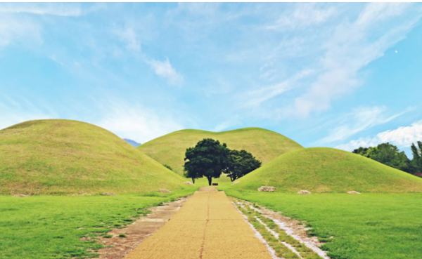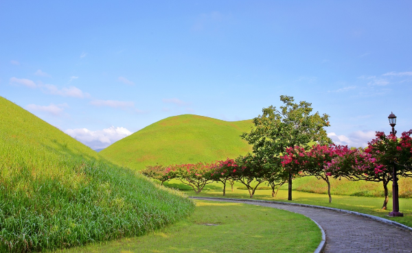 대릉원은 경주 시내에 위치한 거대한 고분군으로, 신라 왕족의 무덤들이 모여 있는 곳입니다. 이곳의 특징은 고분 내부를 실제로 들어가 볼 수 있는 '천마총'이 있다는 점입니다. 천마총 내부에는 신라 왕의 장례 문화와 함께 출토된 다양한 유물들이 전시되어 있어, 그 시대의 생활상을 짐작할 수 있습니다. 대릉원은 아름다운 자연경관 속에서 역사를 체험할 수 있는 특별한 장소입니다.