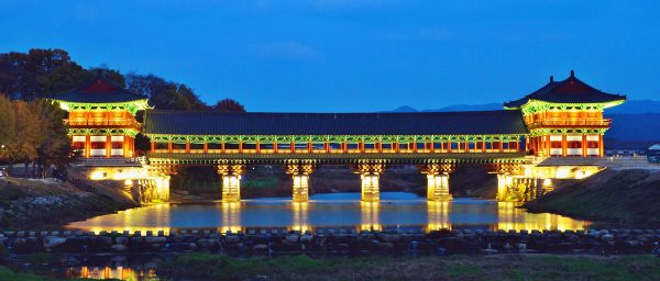 월정교는 경주의 아름다운 전통 건축물 중 하나입니다. 이 다리는 신라시대의 대표적인 교량으로, 복원된 모습이 매우 웅장합니다. 특히 밤에 조명이 켜졌을 때의 모습은 마치 시간여행을 온 듯한 느낌을 줍니다. 교각을 걸으면서 고즈넉한 경주의 풍경을 즐기기에도 좋고, 사진 촬영하기에도 좋은 장소로 손꼽힙니다. 월정교는 경주의 다른 관광지와도 가까워 여행 동선에 넣기 좋습니다.