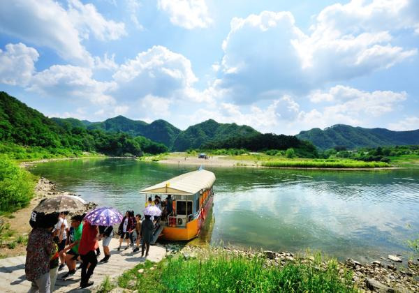 영월 한반도면에 위치한 한반도 뗏목마을은 전통 방식의 뗏목 타기 체험을 통해 옛 문화를 느껴볼 수 있는 특별한 장소입니다. 강 위를 유유히 떠다니며 주변의 한반도 지형과 자연을 감상할 수 있어 색다른 경험을 선사합니다.