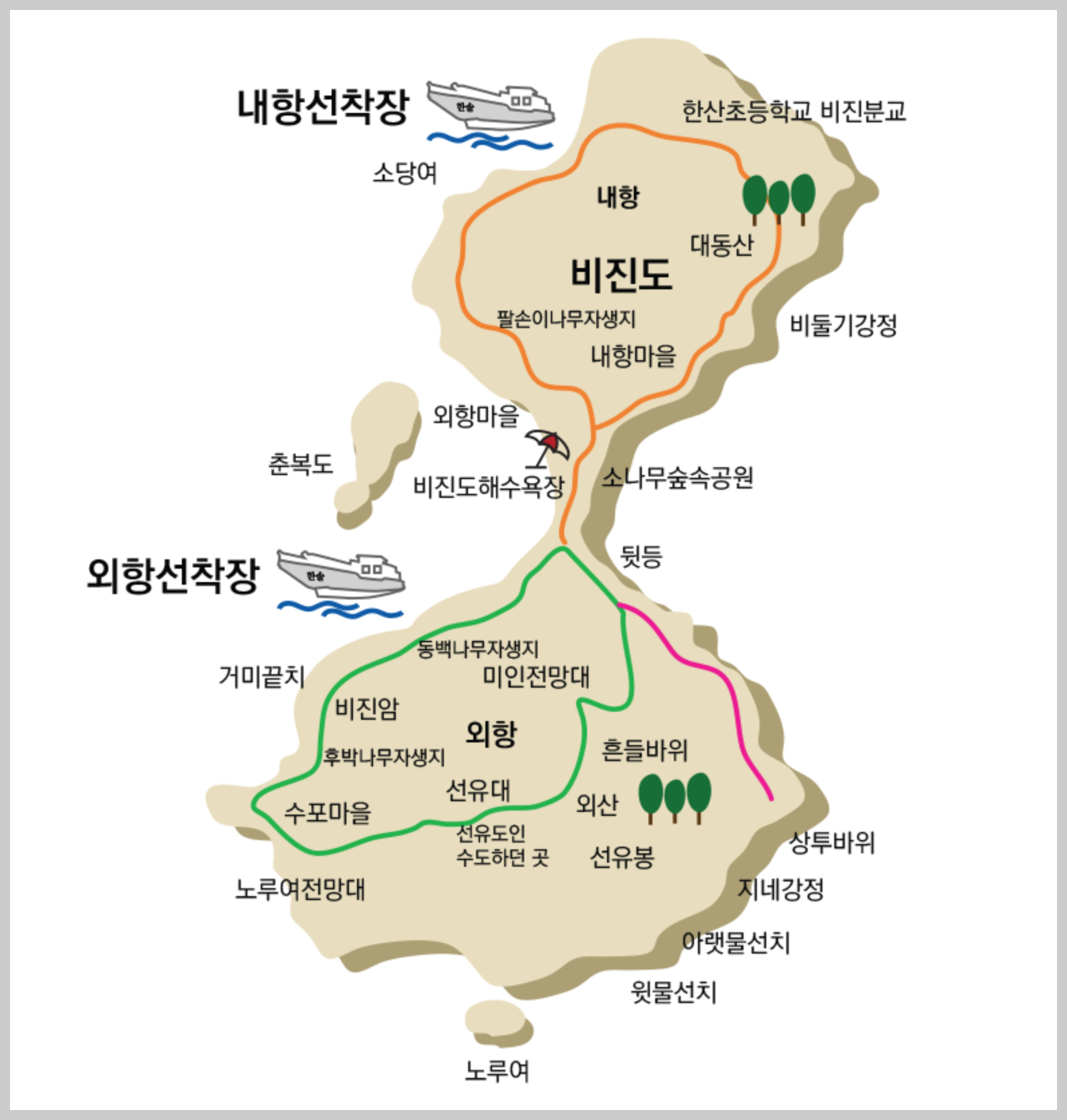 | ⏺️  비진도 해수욕장 주 소 : 경상남도 통영시 한산면 외항길 24 이용시간 : 상시개방 문 의 : 055-650-3600 이용료 : 주 차 : |