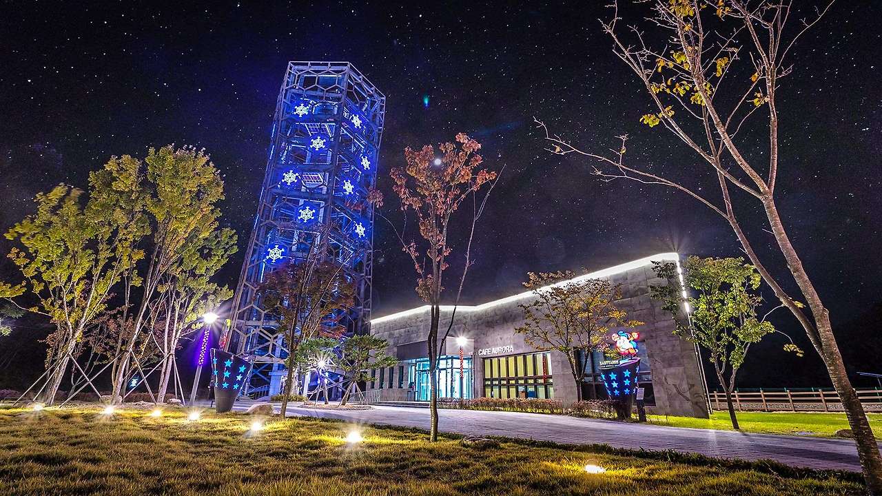 오로라파크는 철도 유휴부지를 활용해 폐역인 통리역에 조성된 문화체험 공원입니다. 이곳에서는 갱차 체험으로 두 사람이 번갈아 손잡이를 움직이며 이동하는 재미를 느낄 수 있습니다. 백두대간과 동해안의 산세를 조망할 수 있는 눈꽃 전망대는 태백 유일의 타워 전망대로, 높이 49.2m에 이릅니다. 미국 파이크스 피크역, 호주 쿠란다역 등 세계 5국의 고원 역사를 소개하는 특별한 전시도 마련되어 있습니다. 밤하늘을 주제로 꾸며진 이 전망대는 걸어서 혹은 엘리베이터로 이용 가능하며, 무료로 개방됩니다. 특히 색색 조명이 빛나는 오로라파크의 야경은 정말 아름답습니다.