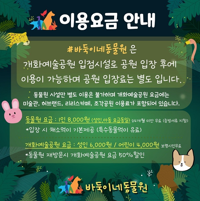 이용료 :  채소먹이포함 - 8,000원 / 무료 - 생후24개월 미만