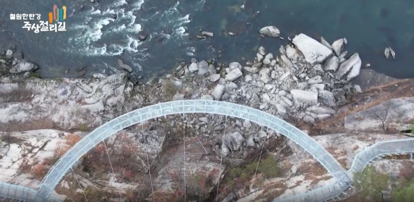 추운 겨울이 깊어질수록 더욱 매력적인 풍경을 선사하는 철원. 이곳에는 겨울에만 만나볼 수 있는 특별한 절경이 숨어 있습니다. 임꺽정의 전설이 깃든 고석정을 지나 얼어붙은 한탄강 위를 걸으면, 화산 폭발로 형성된 기암괴석과 웅장한 주상절리를 가까이에서 감상할 수 있습니다. 특히, 주상절리를 따라 형성된 거대한 고드름은 마치 시간이 멈춘 듯한 신비로운 분위기를 자아냅니다. 여기에 ‘한국의 나이아가라’라 불리는 직탕폭포의 웅장한 겨울 풍경까지 더해져 철원의 겨울은 더욱 특별해집니다.