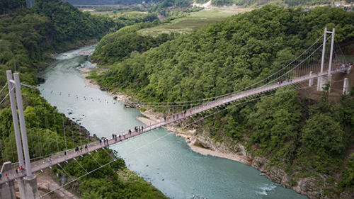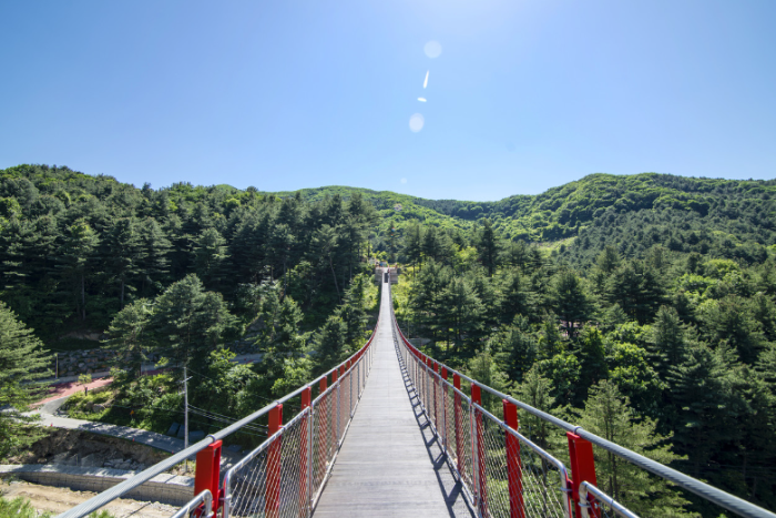 한탄강 협곡 위에 세워진 포천한탄강하늘다리는 길이 200m, 높이 50m의 아찔한 다리로, 한탄강의 웅장한 협곡을 한눈에 내려다볼 수 있는 명소입니다. 다리 중간에는 일부가 유리로 되어 있어 아래를 내려다보는 스릴 넘치는 경험도 할 수 있습니다. 특히 이곳에서는 한탄강 주상절리의 기암괴석과 강의 유려한 흐름을 감상할 수 있어 자연의 웅장함을 직접 체험할 수 있는 곳입니다.
