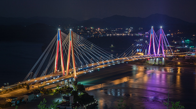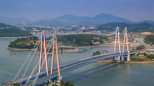 진도대교는 진도와 해남을 연결하는 길이 484m, 폭 11.7m의 쌍둥이 사장교로, 1984년 개통 이후 진도의 상징이 되었습니다. 이 다리 아래 울돌목은 조류가 빠르고 거세기로 유명한데, 이곳이 바로 이순신 장군의 명량대첩이 펼쳐진 역사적인 장소입니다. 명량해전 당시 이순신 장군은 단 12척의 배로 133척의 왜군을 물리치는 전설적인 승리를 거두었으며, 지금도 그 현장은 기념공원과 함께 잘 정비되어 있어 역사 체험의 명소로 자리하고 있습니다. 진도를 향하는 첫 관문으로서 관광객들에게 큰 인상을 남깁니다.