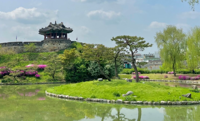 수원화성의 아름다움을 대표하는 건축물 중 하나인 방화수류정은 성곽 북쪽의 동북각루에 위치한 정자입니다. 정조대왕이 직접 이름을 지었다고 전해지며, 이름 그대로 ‘꽃을 심고, 물을 즐긴다’는 뜻을 담고 있습니다. 이곳은 수원화성 내에서도 가장 사진이 잘 나오는 장소로 손꼽히며, 연못과 어우러진 정자의 모습이 한 폭의 산수화를 떠올리게 합니다. 특히 일몰 시간이나 야경 때 방문하시면 더욱 아름다운 풍경을 감상하실 수 있습니다.