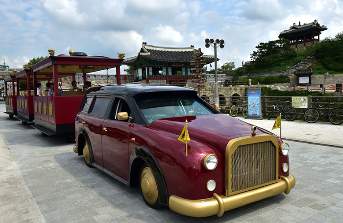 수원화성의 주요 지점을 편안하게 둘러보고 싶으시다면 '화성어차'를 이용해보시길 추천드립니다. 화성어차는 전통 왕실의 가마를 현대식 전동차로 재현한 관광용 차량으로, 장안문부터 연무대까지 성곽 외곽을 따라 운행됩니다. 성벽 너머로 펼쳐지는 수원의 전경을 감상하며 이동할 수 있고, 해설사의 설명을 들으며 수원화성의 역사에 대해 더 깊이 이해할 수 있는 기회도 됩니다. 노약자나 어린이를 동반한 분들께 특히 유용한 교통수단입니다.