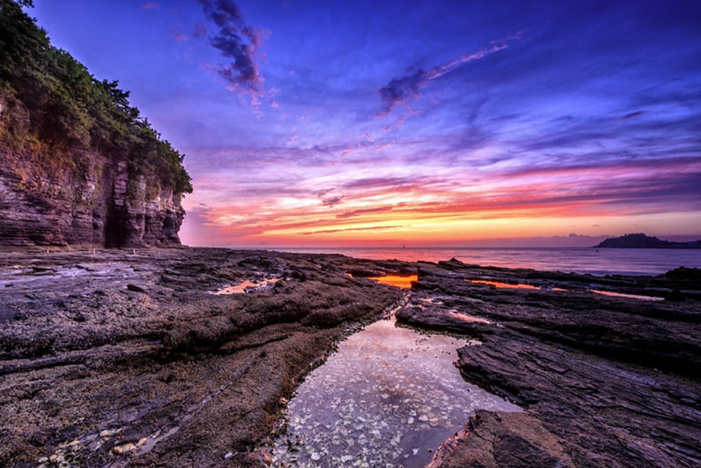 변산반도국립공원의 대표적인 명소로, 수천만 년에 걸쳐 형성된 퇴적암 지층이 해안 절벽을 따라 겹겹이 쌓여 있습니다. 마치 책장을 넘기듯 펼쳐진 단층 구조는 보는 이로 하여금 자연의 신비로움에 감탄하게 만듭니다. 특히, 썰물 시간에 맞춰 방문하시면 해안선 아래로 드러난 바위와 물웅덩이를 가까이에서 관찰할 수 있어 더욱 풍성한 경험이 가능합니다. 해 질 무렵에는 붉게 물든 하늘과 함께 채석강의 절벽이 어우러져 장관을 이룹니다.