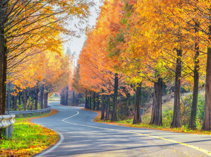 칠산타워 인근에 위치한 S자 메타세쿼이아길은 드라이브 코스로도 유명한 곳입니다. 길게 뻗은 도로를 따라 양옆으로 늘어선 메타세쿼이아 나무들이 마치 유럽의 한 장면처럼 아름다운 풍경을 만들어냅니다. 사계절 내내 매력적인 이곳은 특히 가을이면 붉게 물든 단풍과 함께 더욱 낭만적인 분위기를 자아냅니다. 차량이 많지 않아 여유롭게 드라이브를 즐기시거나 산책하기에도 좋은 장소입니다.