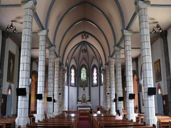 감곡면에 위치한 감곡매괴성모순례지성당은 충청북도에서 가장 오래된 성당 중 하나로, 1896년에 건립되었습니다. 프랑스 선교사에 의해 세워진 이 성당은 로마네스크 양식의 아름다운 벽돌 건축으로, 지금도 원형이 잘 보존되어 있어 역사적 가치가 큽니다. 성당 내부로 들어서면 스테인드글라스를 통해 들어오는 햇살이 고요하게 비추며, 자연스럽게 마음이 차분해집니다. 성당 주변은 작은 산책길과 기도길이 조성되어 있어 순례자뿐 아니라 일반 방문객들도 조용한 시간을 보내기 좋습니다.