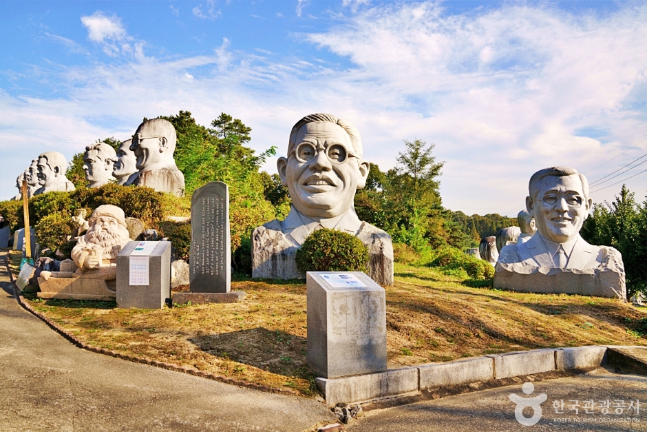 충북 음성군 생극면에는 특별한 테마파크가 하나 있습니다. 바로 ‘큰바위얼굴 테마파크’인데요, 이름에서도 알 수 있듯이 이곳은 ‘큰 바위 얼굴’이라는 미국 소설에서 영감을 받아 조성된 공원입니다. 이곳의 가장 큰 특징은 세계 각국의 유명 인물 3,000여 명의 얼굴 조각이 전시되어 있다는 점인데요, 예수님, 간디, 링컨, 마더 테레사, 그리고 한국의 싸이와 반기문 전 유엔 사무총장까지 시대와 국경을 초월한 인물들이 한자리에 모여 있습니다. 사람 얼굴을 형상화한 대형 조각들 사이를 걷다 보면 마치 인류의 역사 속을 여행하는 듯한 특별한 경험을 하게 됩니다. 전시 외에도 공원 전체가 조용하고 평화로운 분위기여서 산책이나 가족 나들이 장소로도 좋습니다.