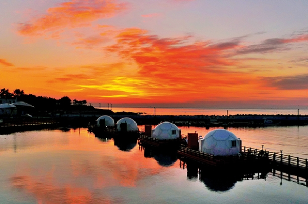 포항의 인기 관광지인 해상스카이워크는 평균 높이 7m, 총 길이 463m로 국내에서 가장 긴 해상 보도교입니다. 영일만 바다를 한눈에 담을 수 있으며, 맑은 날에는 포항 제철소까지 보이는 탁 트인 풍경이 인상적입니다. 투명 유리 바닥 덕분에 마치 바다 위에 서 있는 듯한 느낌을 주며, 곡선으로 이어진 산책로와 천연 해수풀도 놓치지 마세요. 아침에는 일출, 저녁에는 멋진 야경을 감상할 수 있는 특별한 경험을 제공합니다.
